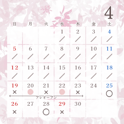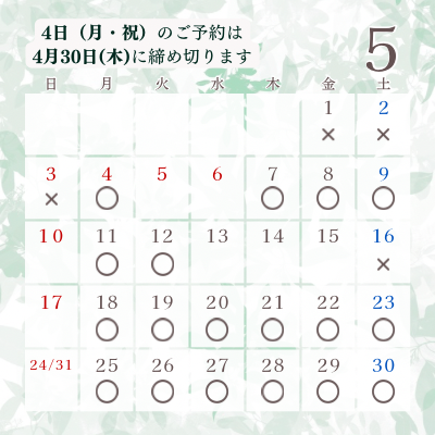 ご予約ご希望の方は、下記の日程からお選びください